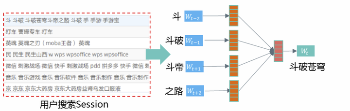 或者把一个用户搜索session序列当成文章,其中的每个query作为文章的一个词语,作出假设:如果两个query有相同的session上下文,则它们是相似的,然后通过训练word2vec、fasttext等模型将query向量化,进而可以计算得到query间的embedding相似度。