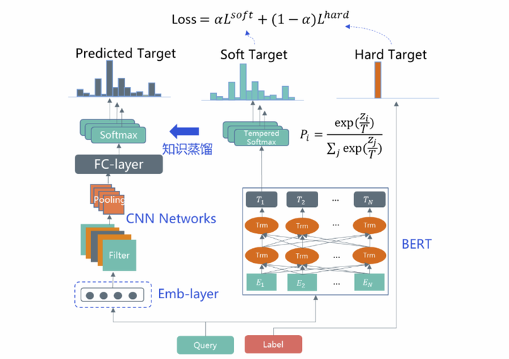 通过在大规模语料上预训练得到的BERT等模型能较好地动态捕获词语在不同上下文中的前后向语义表达,基于这些预训练模型在意图分类任务上进行finetune学习能进一步提升模型分类准确率。同样地,像ERNIE等模型通过引入外部知识也能进一步提升模型效果,尤其在一些垂直搜索有较多特定领域实体的情况下,可以尝试将这些领域实体知识融入模型预训练及finetune过程中。由于BERT等模型复杂度较高,进行在线inference时耗时也相对较高可能达不到性能要求,为此需要在模型精度和复杂度上做个权衡,从模型剪枝、半精度量化、知识蒸馏等方向进行性能优化。这里可以尝试通过权重分解及参数共享等方法精简优化的ALBERT模型,也可以尝试诸如DistilBERT、TinyBERT等知识蒸馏学习模型。